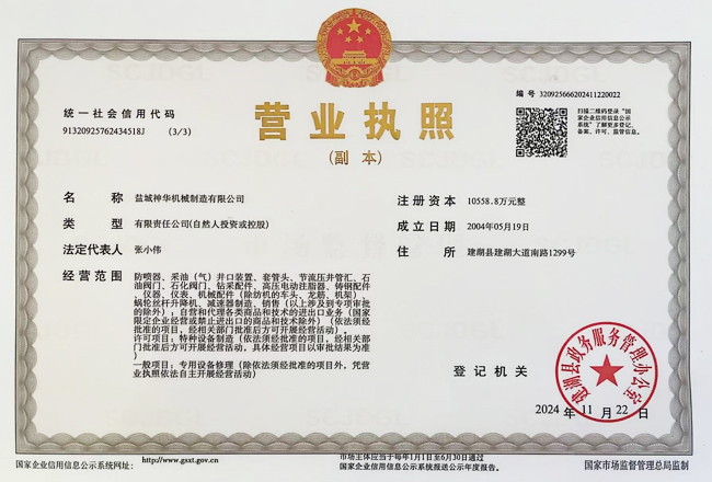 鹽城神華機(jī)械制造有限公司為中國石油、石化、海洋物資裝備(集團(tuán))總公司的網(wǎng)絡(luò)成員單位,公司注冊(cè)資金10558.8萬元整,公司通過了ISO9001國際質(zhì)量體系認(rèn)證,取得了中國船級(jí)社船舶產(chǎn)品和配件使用證書。